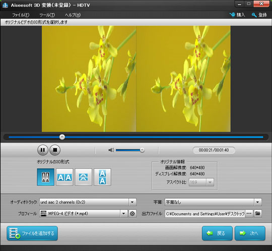 ソースビデオに応じて、正確なオリジナル3Dビデオモードを選択します。サイドバイサイド(フル)3D、サイドバイサイド(ハーフ幅)3D、トップ/ボトム(フル)3D とトップ/ボトム(ハーフハイト)3Dビデオをプログラムに追加することをサポートします。