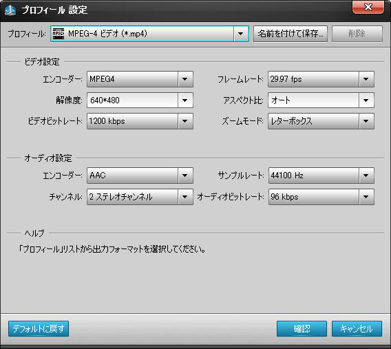 ターゲットファイルを選択した後で、「設定」ボタンをクリックして、もっと詳細なビデオとオーディオパラメータを設定する。