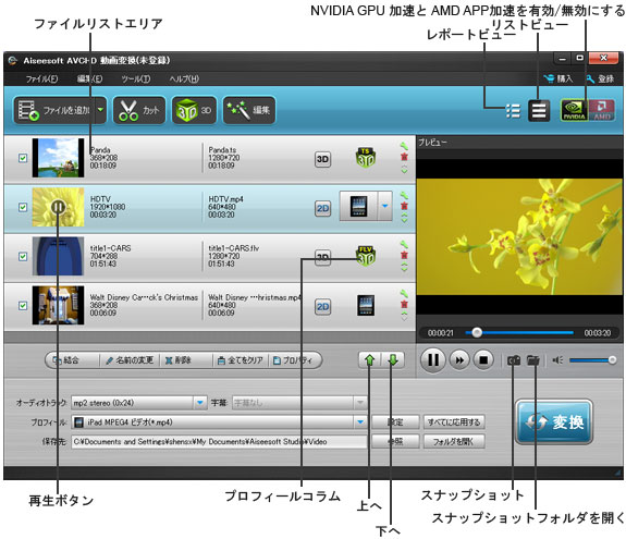 2. NVIDIA® CUDA™ 技術とAMD APP技術は変換スピートを上げました。