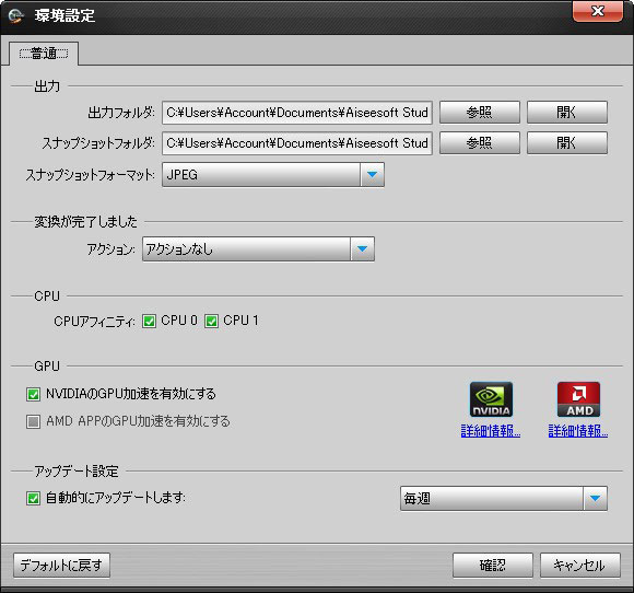 もしあなたのPCグラフィックカードのモデルはNVIDIA® CUDA™技術あるいはAMD GPU 加速に対応する場合、対応オプションをチェックして、変換加速を起動できます。