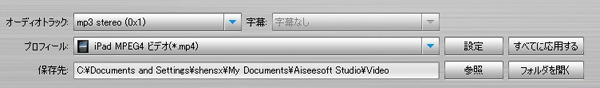 2. 同じのフォーマットを出力するために、選択されたソースファイルからターゲットフォーマットを選択しから、「プロフィール」の右の「全てに応用する」ボタンをクリックして、全ての他のソースファイルを適用します。