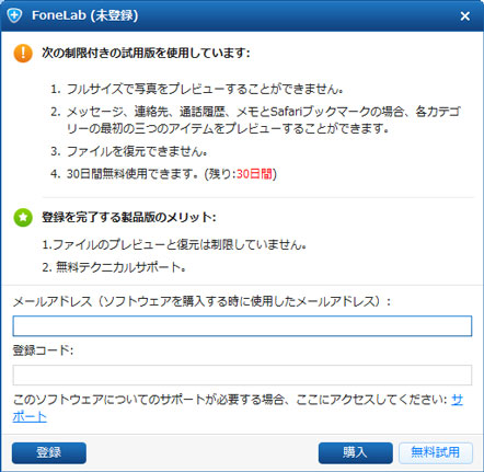 登録コード: お客様が成功に購入した後受け取られた注文確認書で、マークされた文字列がアクティベーションキー、ライセンスコード或いは キーコード です。