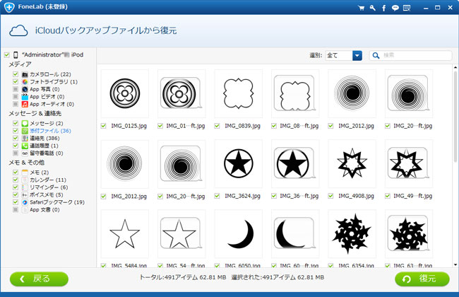Aiseesoft FoneLabを利用して、iCloudバックアップファイルからデータを復元することもできます。 バックアップしてから削除されたデータ及びバックアップファイルに存在するデータを取り戻すことができます。