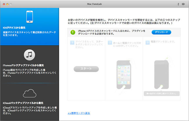 iPhone4、iPhone 3GS、iPad1及びiPod touch4に対して、プログラムにより、すでに削除された全てのデータを復元できます。これらのデータは連絡先、メッセージ、通話履歴、カレンダー、メモ、リマインダー、Safariブックマーク、Whatsapp、カメラロール、フォトライブラリ、フォトストリーム、App 写真、App ビデオ、App オーディオ、メッセージ添付ファイル、Whatsapp添付ファイル、App 文書、ボイスメモ、留守番電話を含めます。