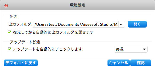 出力: 出力フォルダの保存場所を選択し、復元した後自動的にに出力フォルダを開く場合は、対応するオプションをチェックします。