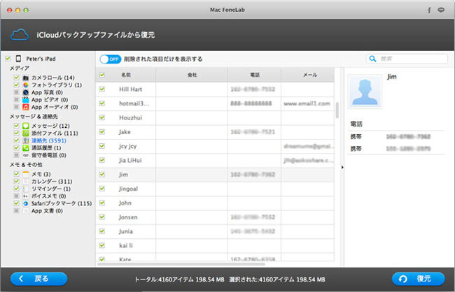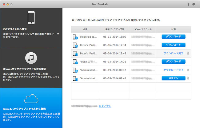 Aiseesoft Mac FoneLabを利用して、iCloudバックアップファイルからデータを復元することもできます。 バックアップしてから削除されたデータ及びバックアップファイルに存在するデータを取り戻すことができます。