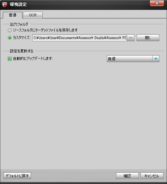 メインインタフェースで「環境設定」ボタンをクリックして、環境設定ウィンドウが開かれます。優れたユーザーエクスペリエンスのために、下記のオプションを設定できます。