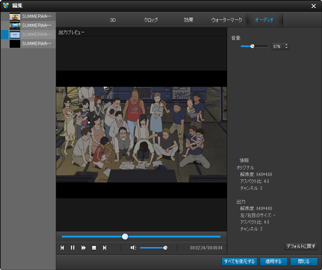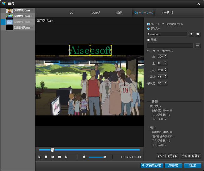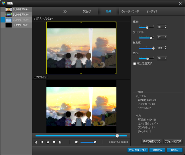 6. 如何なるビデオファイルを3D効果で出力できます。