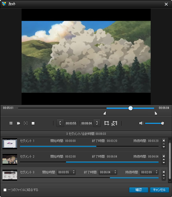 2. ビデオを複数のファイルにカットして、それぞれ変換あるいは結合して変換できます。
