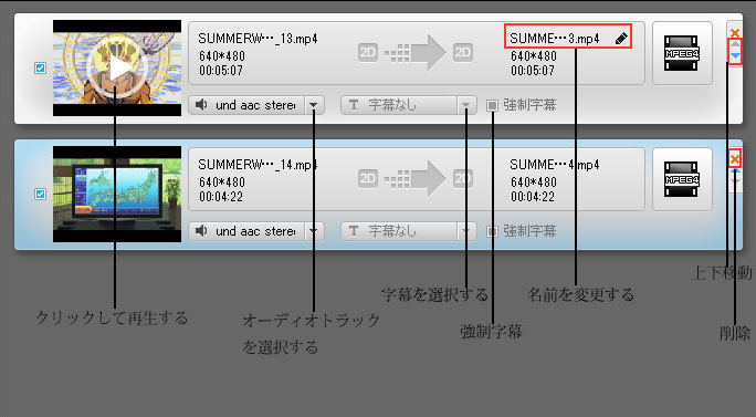 以上の操作が終わってから、ロードされたファイルリストで変換したいファイルを選択して、それから、「変換」ボタンをクリックして、ファイルの変換が始まります。