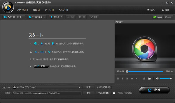 Aiseesoft 動画変換 プラチナは専門的な動画変換ソフトです。このソフトにより、流行っているビデオフォーマットをビデオ/オーディオフォーマットに変換でき、流行っているデバイスで再生できます。アップルデバイス(iPhone、iPad、iPod、Apple TVなど)、Andriodデバイス(Samsung GALAXY S、Samsung GALAXY Note、Samsung Noteなど)、動画編集ソフト(Adobe Premiere、Sony Vegasなど)と3Dテレビ(Samsung、Sonyなど)を含めます。