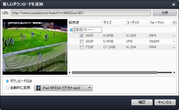 選択できるオプションは二つあります:ダウンロードのみと自動的に変換