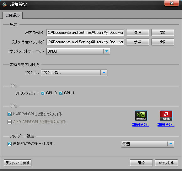 もしあなたのPCグラフィックカードのモデルはNVIDIA® CUDA™技術あるいはAMD GPU 加速に対応する場合、対応オプションをチェックして、変換加速を起動できます。